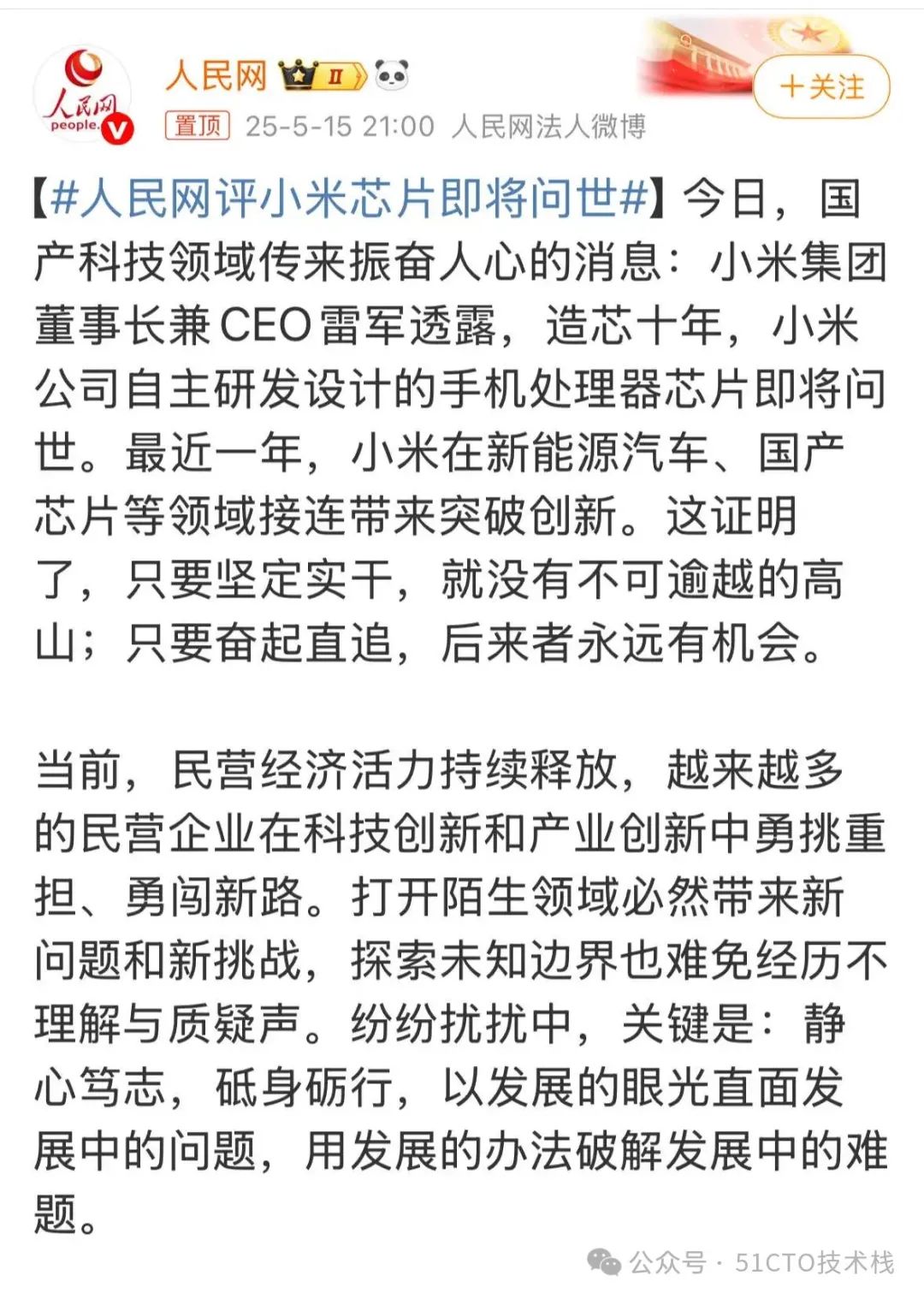 更具标志性的是,5月19日,小米集团创始人、董事长兼CEO雷军宣布,小米自主研发设计的3nm制程手机处理器芯片玄戒O1即将亮相。