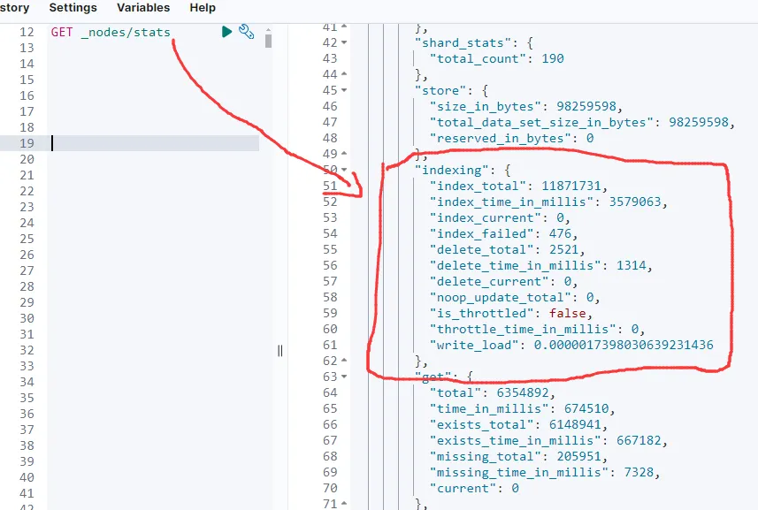 使用 _nodes/stats API 获取各节点的性能指标: