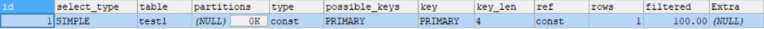 EXPLAIN SELECT * FROM test1 WHERE id = 5;1.