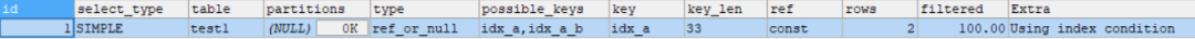 EXPLAIN SELECT * FROM test1 WHERE a=10 OR a = NULL;1.