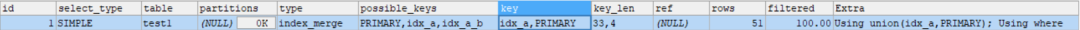 EXPLAIN SELECT * FROM test1 WHERE a=900 OR id > 950;1.