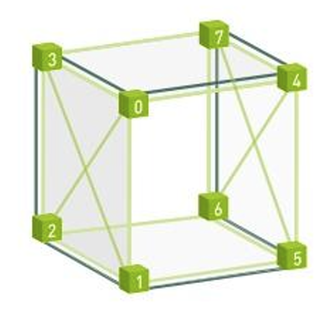 每一块GPU都巧妙利用了其6条NVLink,与其他4块GPU相连。8块GPU以有限的NVLink数量,实现了整体系统的最佳性能。