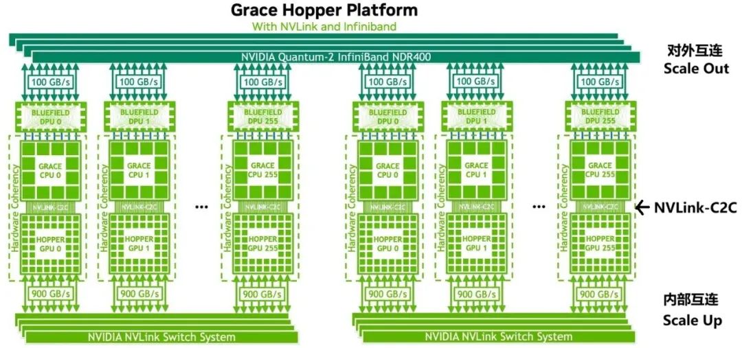 例如,英伟达的GH200,就是基于NVLink-C2C,将Grace CPU和Hopper GPU连接成Grace Hopper超级芯片。