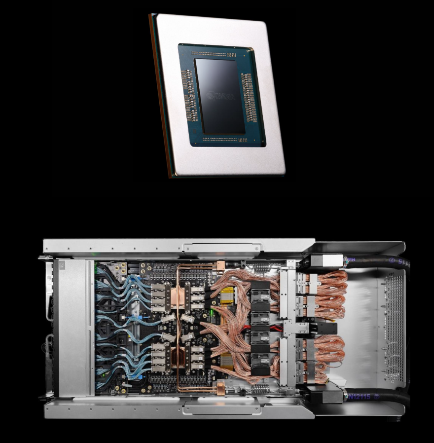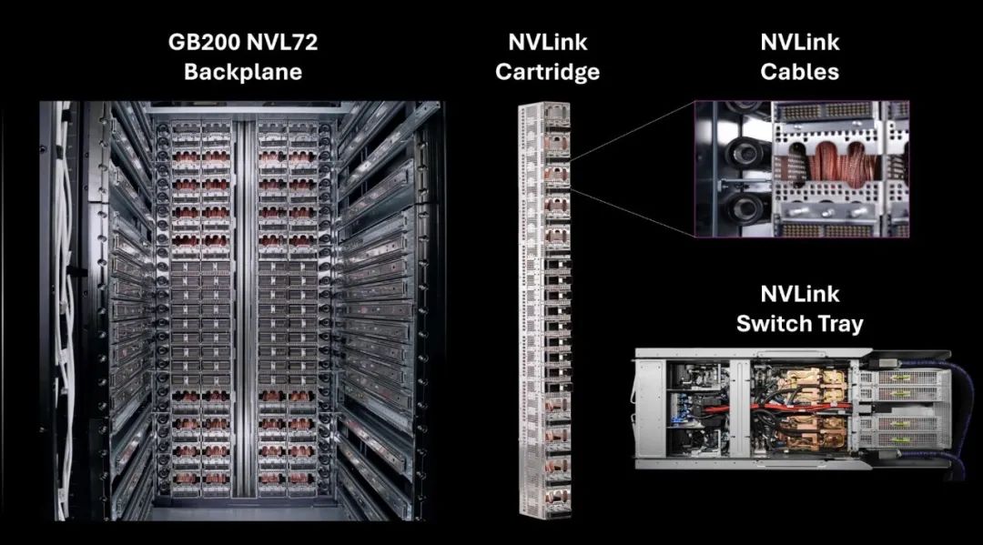 在这些连接器中,容纳了5000多根节能同轴铜缆(NVLink Cables,带有内置信号放大器),可以提供130TB/s的全对全总带宽和260TB/s的集合通信(AllReduce)带宽。