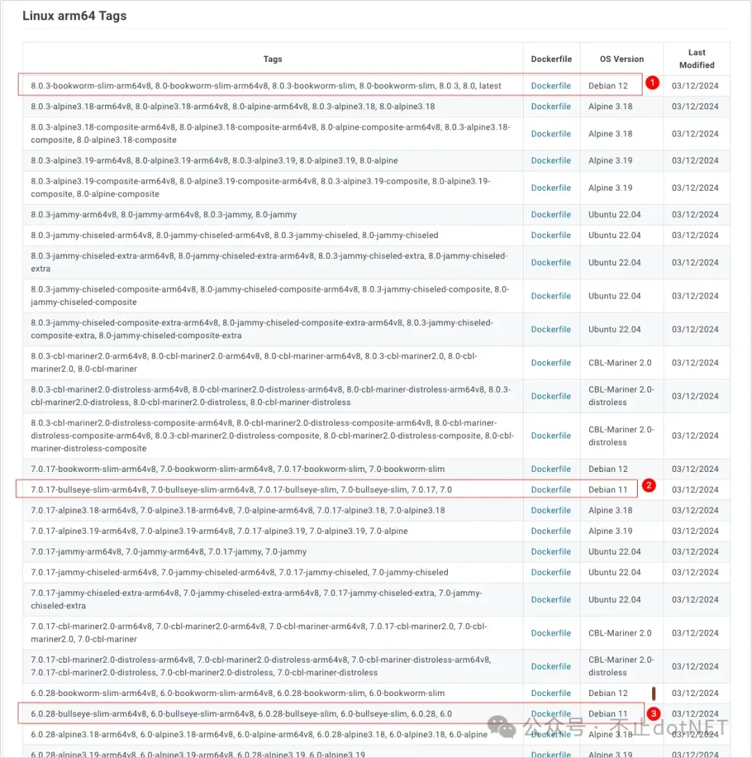 正常情况下,拉取 .NET 8 对应的镜像用来做应用的基础镜像即可。.NET 8 的镜像地址如下: