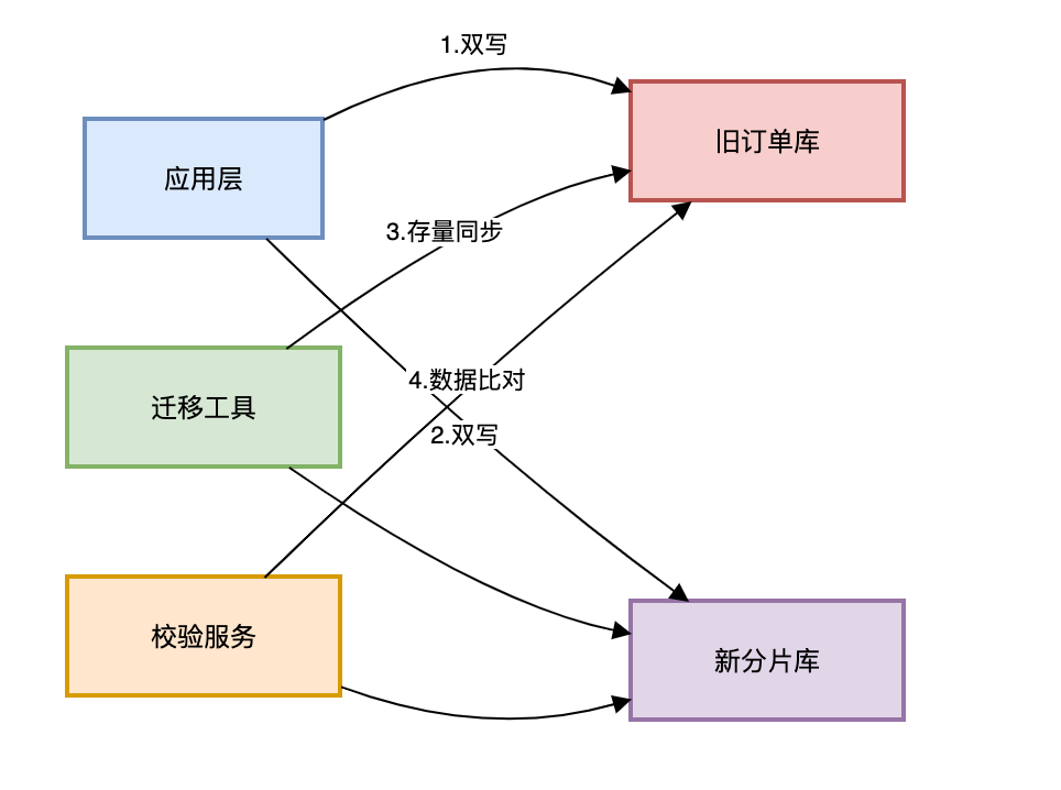 开启双写(新库写失败需回滚旧库)全量迁移历史数据(采用分页批处理)增量数据实时校验(校验不一致自动修复)按用户ID灰度流量切换(从1%到100%)