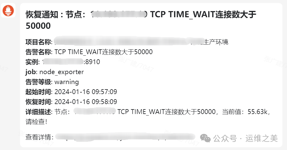 客户反馈收到如下告警,主机TCP timewait连接数过多