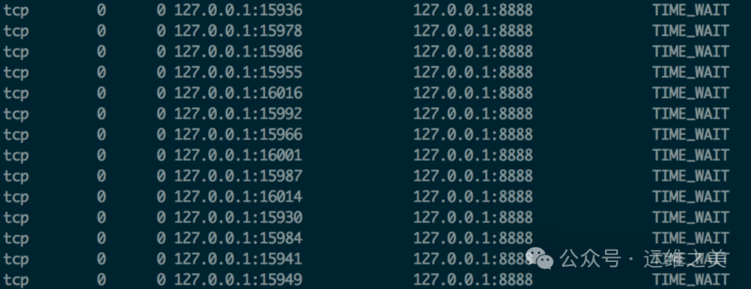 一部分 TIME_WAIT 连接被回收,但新的 TIME_WAIT 连接产生,新产生的连接数超过释放的速度;一些极端情况下,会出现大量的 TIME_WAIT 连接。Think:上述大量的 TIME_WAIT 状态 TCP 连接,有什么业务上的影响吗?