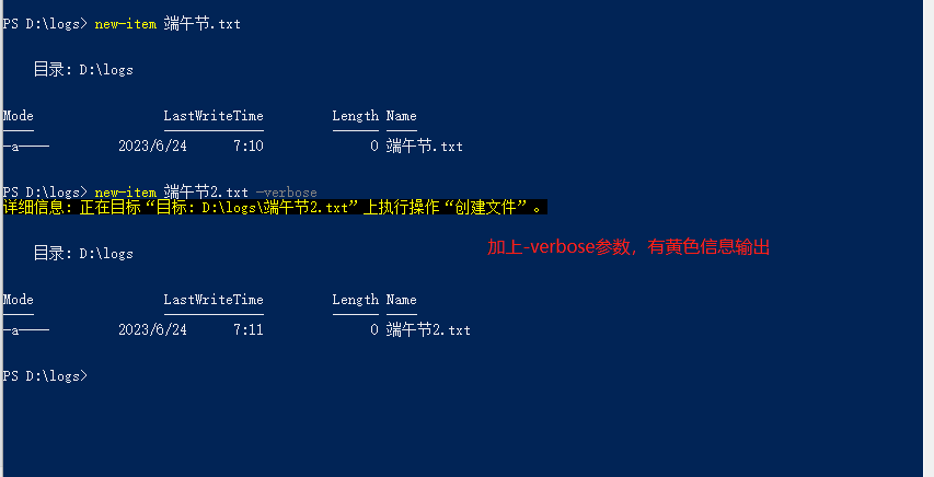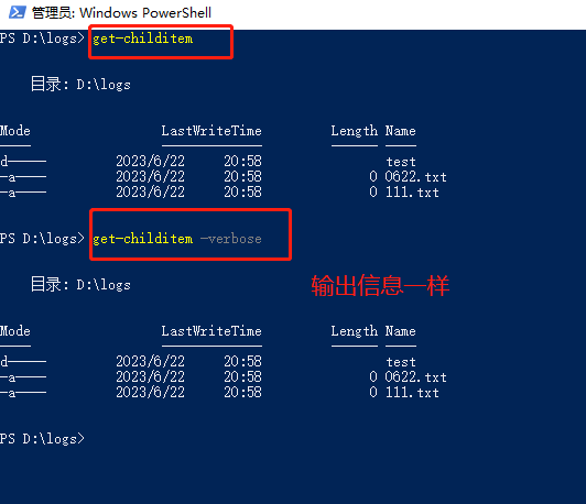 Verbose 参数主要用来显示函数执行过程中通过Write-Verbose写入的相关信息,如果命令执行当中有写入则会有反馈信息输出,反之则没有任何信息输出。