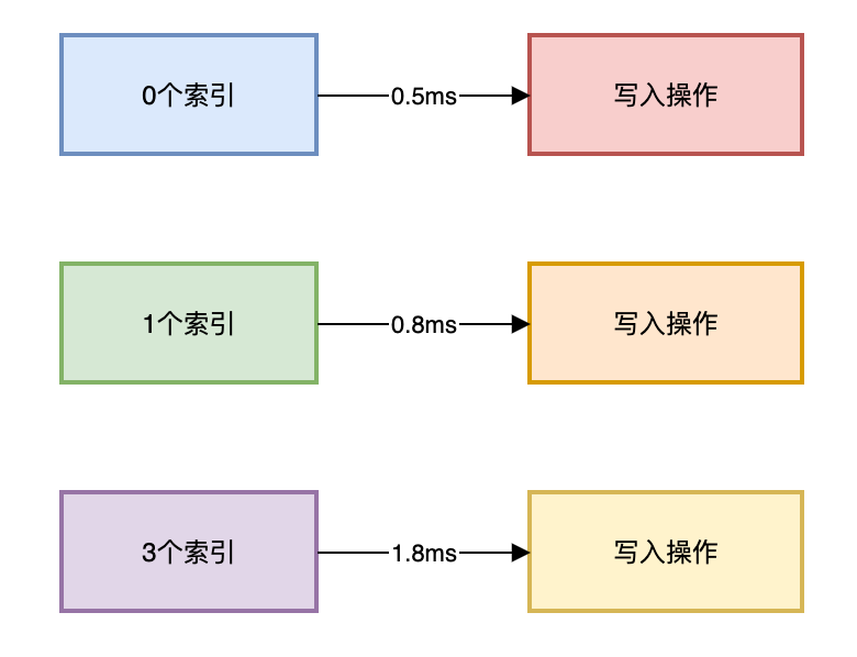 INSERTINTO test_table VALUES (...) -- 无索引:0.5ms