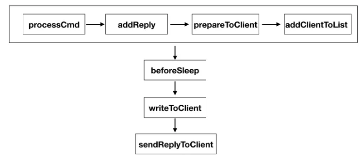 clients_pending_write:线程专属的链表,维护同步给客户链接发送数据的队列;clients_pending_asyncwrite:线程专属的链表,维护异步给客户链接发送数据的队列;clients_to_close:全局链表,维护需要异步关闭的客户链接。分成同步和异步两个队列,是因为redis有些联动api,比如pub/sub,pub之后需要给sub的客户端发送消息,pub执行的线程和sub的客户端所在线程不是同一个线程,为了处理这种情况,KeyDB将需要给非本线程的客户端发送数据维护在异步队列中。同步发送的逻辑比较简单,都是在本线程中完成,以下图来说明如何同步给客户端发送数据: