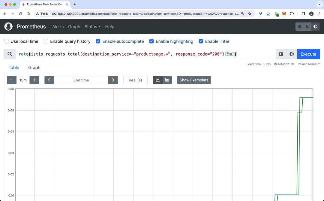 rate(istio_requests_total{destination_service=~"productpage.*", response_code="200"}[5m])1.