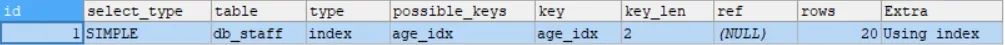 对分组字段加索引是最好的优化方法。我们对 age 字段加一个索引: