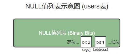 3. NULL 值列表:节省空间的 “小能手”在 InnoDB 中,NULL 值列表是一种节省空间的巧妙设计。它不存储 NULL 的实际值,而是用每个字段对应的一位二进制位来标记: