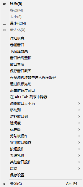 该软件提供的功能对于任何窗口都是有效的,不过也有例外情况,比如针对那些软件自身渲染窗口边框的软件(比如:钉钉)就无法使用该功能了,不过对于大多数软件都是ok的。