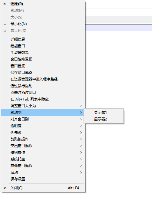 移动到. 将当前窗口移动到另一个显示器。