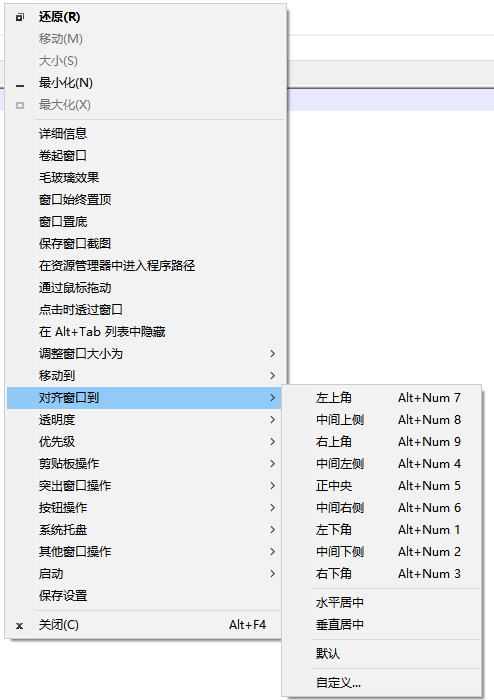 对齐. 当前窗口与桌面上的9个位置中的任何一个对齐。