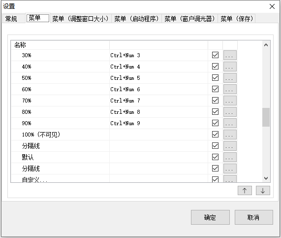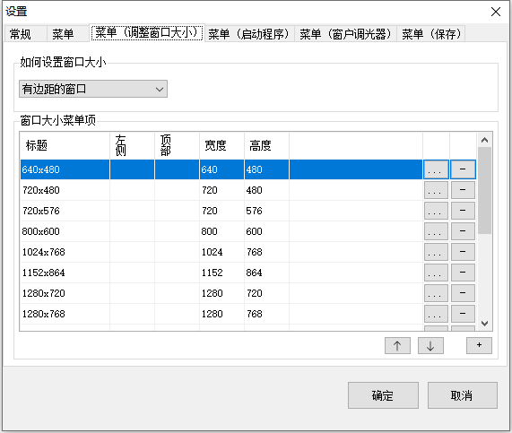 菜单(调整窗口大小):主要是针对调整窗口大小尺寸字典设置。