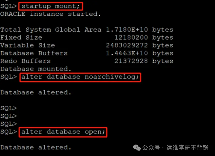 3. 强制切换至非归档模式救急为了解除当前 redo log 的归档限制,我们使用以下“强制解锁”方案: