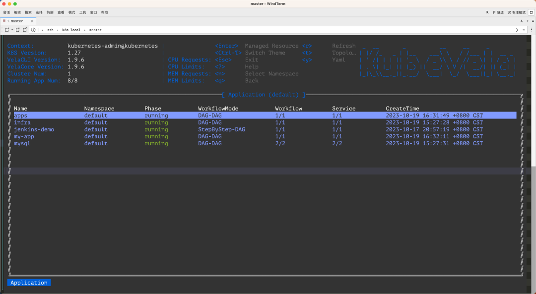 最后如果你觉得应用太多管理不太方便,那么我们还可以使用vela top命令获取平台的概览信息以及对应用程序的资源状态进行诊断。