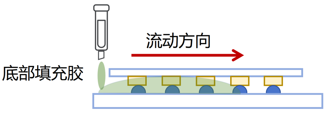 底部填充工艺一般分为三种:毛细填充(流动型)、无流动填充和模压填充。