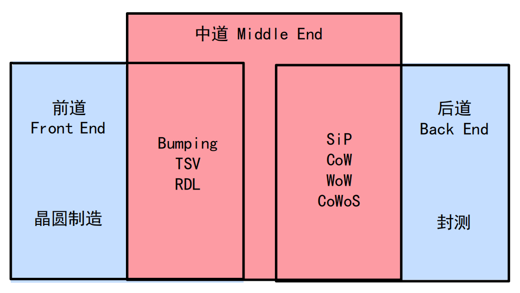 凸点(bump)的制造过程与晶圆制造(前道)过程非常相似,本身又介于晶圆制造(前道)和封装测试(后道)之间。所以,也被称作“中道”工序。