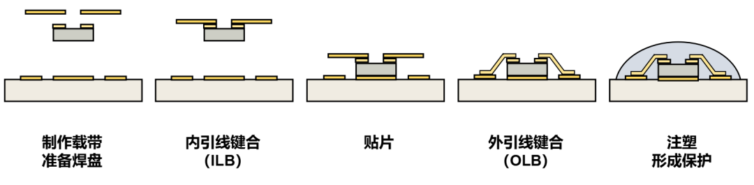 载带自动键合(Tape Automated Bonding,TAB),是一种将芯片组装到柔性载带上的芯片封装键合技术。