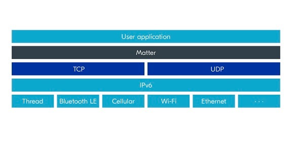 图 1:Matter 提供了一个标准应用层,可与各种无线协议一起使用