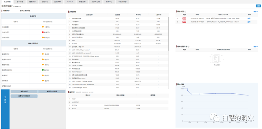 构建完健康模型、故障模型后,接下来可以构建日检、巡检、周报、容量审计、SQL审计、对象审计等方面的巡检工具。也可以构建监控看板、关键Sql跟踪等方面的应用工具,以支撑关键业务的高质量运行需求。