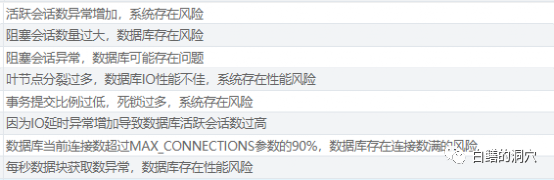如上图,虽然系统中出现了数万次基线告警(基于智能基线,不是简单的阈值),但是我们从系统汇总信息中没有看到需要人去干预的告警(上上图的左侧中间)。此时数据库系统虽然负载很高,性能也较差,但是系统判断目前还没有出现必须由运维人员手工处置的告警。