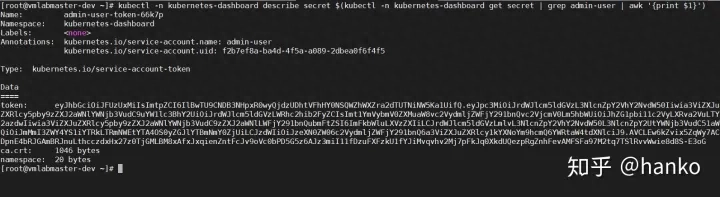 kubectl describe secrets -n kubernetes-dashboard admin-user-token | grep token | awk NR==3{print $2}1.