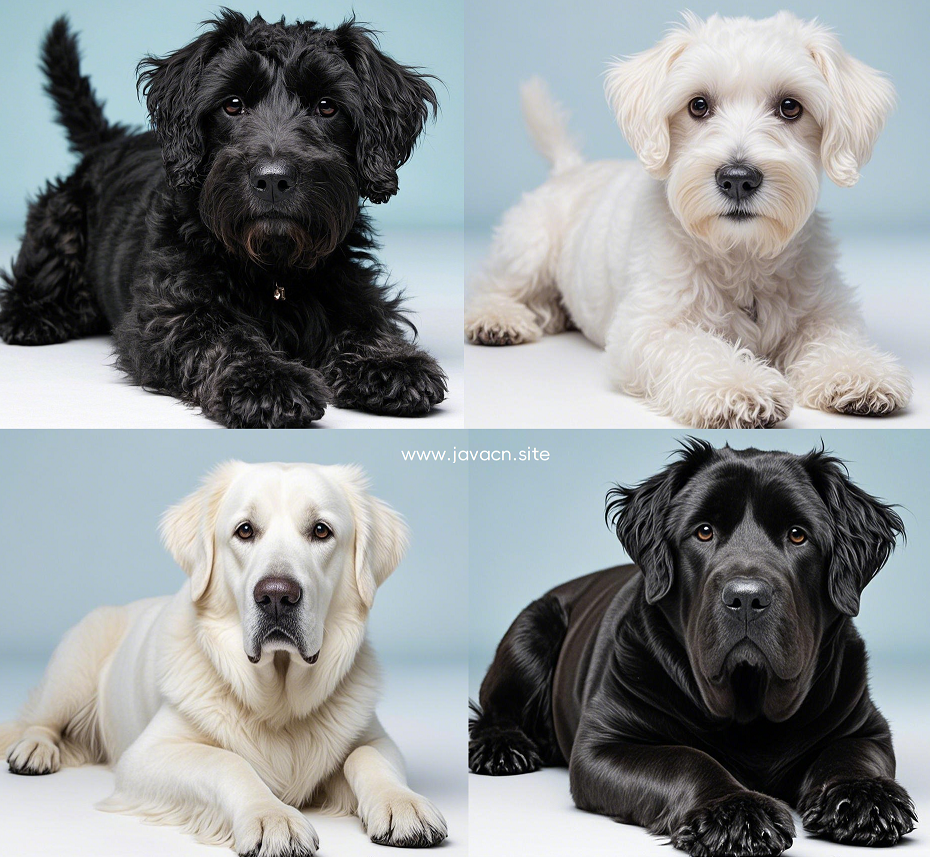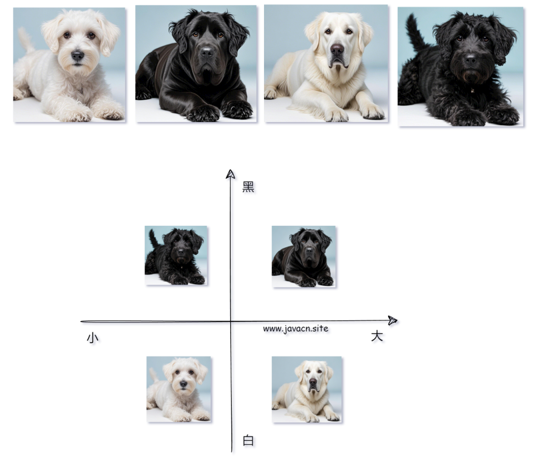 例如,有以下 4 种狗,我们要在大模型中如何表示它们呢: