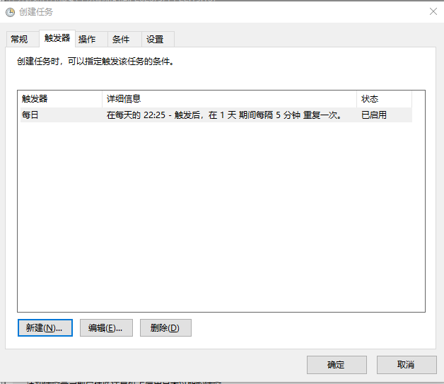 切换到触发器选项卡,设置每五分钟执行一次。