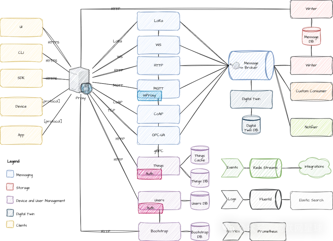 Magistrala还提供了可插拔的存储和消息代理选项。无论是SQL、NoSQL还是其他数据库解决方案,Magistrala都支持可插拔的存储选项,以满足您的特定需求。Magistrala与NATS、Kafka、RabbitMQ等多种消息代理无缝集成,使您能够根据精确需求定制IoT基础设施,实现高效通信和数据处理。