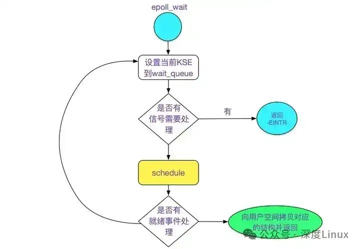 epoll_ctl用于控制 epoll 实例,对指定的文件描述符fd执行操作op。epfd是epoll_create返回的 epoll 实例文件描述符;op有三个取值:EPOLL_CTL_ADD表示将文件描述符fd添加到 epoll 实例中,并监听event指定的事件;EPOLL_CTL_MOD用于修改已添加的文件描述符fd的监听事件;EPOLL_CTL_DEL则是将文件描述符fd从 epoll 实例中删除,此时event参数可以为 NULL。