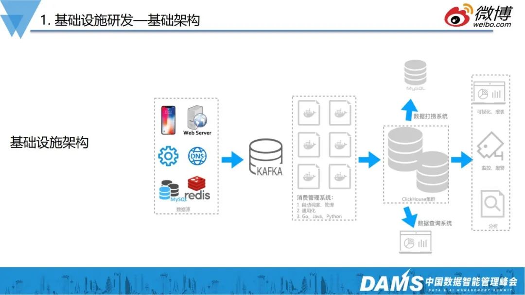 上层对接各种业务层数据,这些数据通过Kafka数据总线,最终通过ETL流程写到ClickHouse数据仓库里,运维和数据分析师则可以直接在ClickHouse上面做查询。而对于需要长期保留的数据,我们开发了一些工具把这些数据打捞到MySQL等持久化存储。