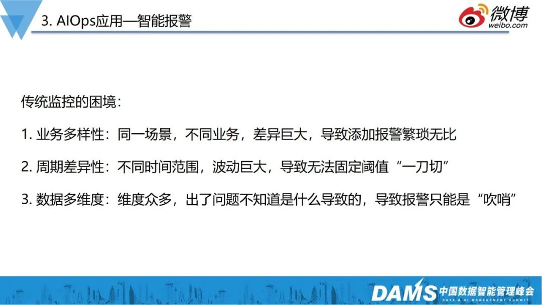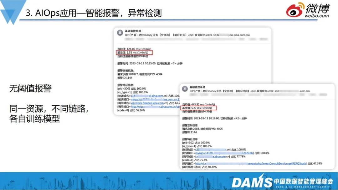 比如同一个DB,有两个业务或接口,背后的SQL、业务逻辑都是不一样的,这一块的报警就要引入算法去做。