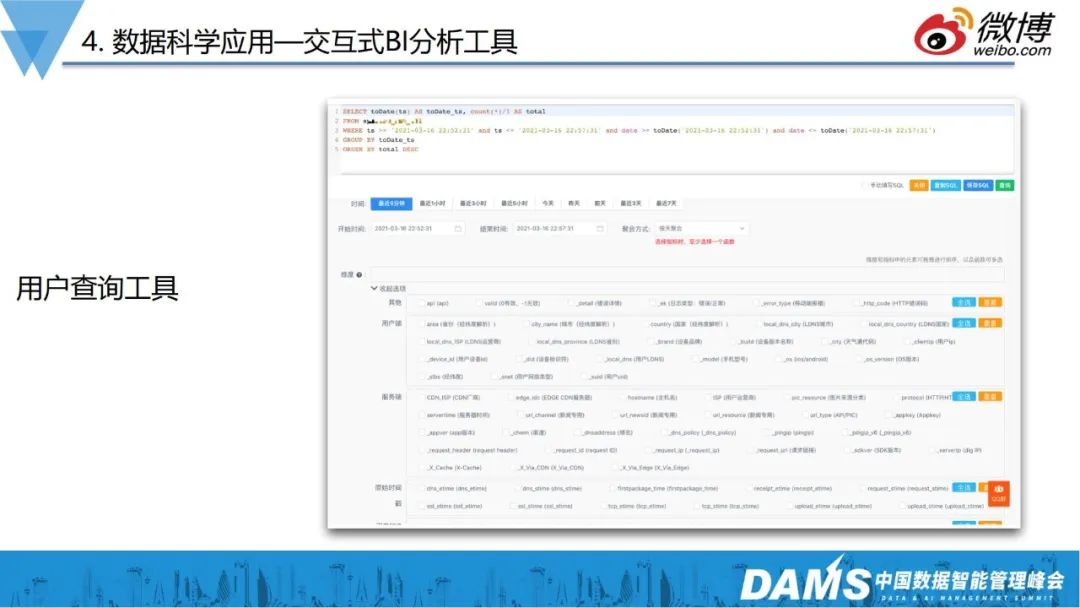 数据分析的最后一公里,是让需要用的人,以一个很低的成本用起来,如我们内部的APM日志回捞的工具,CDN的同事就会经常用来分析问题。作为基础服务,需要快速排查用户的投诉问题,比如用户反馈视频的首帧慢了、图片加载异常了,使用这些工具,就能够快速的看到到底是DNS的原因,还是TCP建联的问题,还是后端服务的确是慢了。