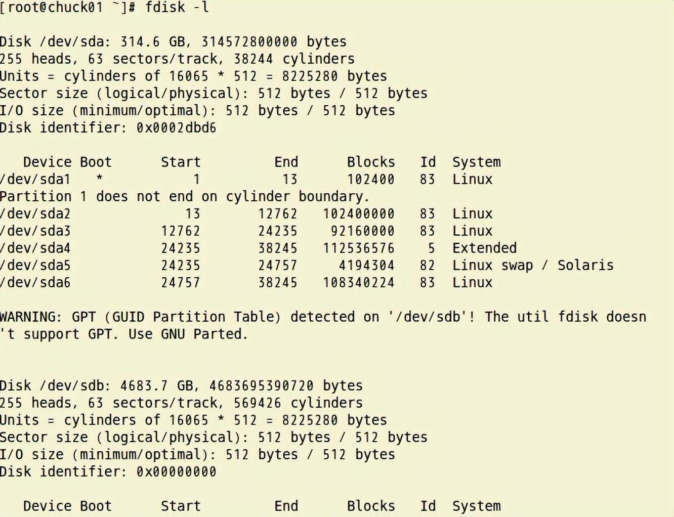 现在我们知道了要创建一个大于2TB的分区,就不能使用MBR 格式的分区表了,而要使用GPT格式的分区表,我们最常用的fdisk 分区工具就爱莫能助了,需要使用linux 下的Parted分区工具!