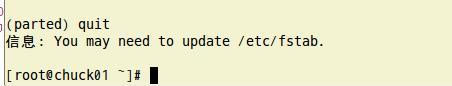 5、quit 用于退出parted环境,信息提示更新/etx/fstab!