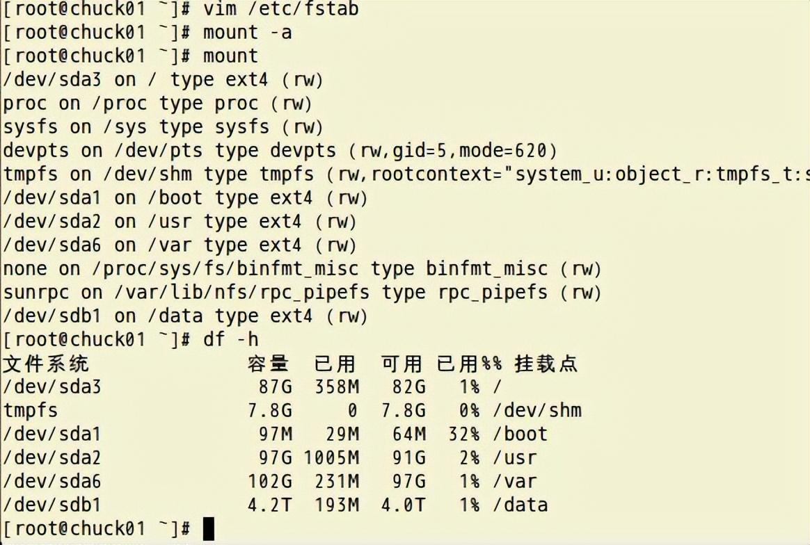 8、格式化/dev/sdb1 文件系统为EXT4。