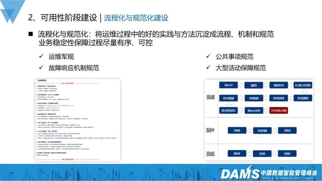 例如大型活动的保障规范,在规范没有建立起来之间,如有大型运营活动或春节红包派送活动的时候,线上很容易出故障,自从2018年把大型活动保障规范建立起来之后,春节等重保都能保障平稳运行。