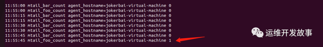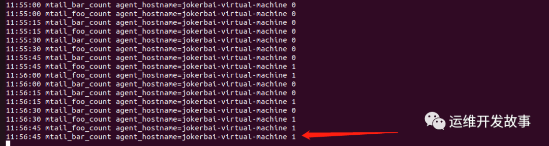 foo_count{prog="prog1.mtail"} 1 # 可以看到foo_count指标数为1了1.2.3.4.5.6.7.8.9.10.11.12.13.14.15.16.17.18.19.20.21.22.23.24.25.26.27.