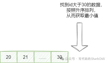 该问题实际上有两种比较常见的方案,一种是search_after上下翻页查询,如方案名所说,当用户进行上下翻页的时候,永远都是基于本次分页的结果的区间定位上一页和上一页,这也就意味着该查询必须要求用户的数据必须具备有序的字段,例如我们当前查询到id为20~30的数据,基于该方案我们获取下一页的数据就是找到大于30的前10条数据: