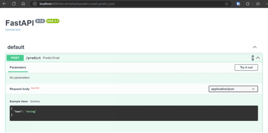 为了测试API,我们将向`/predict`端点发送五个请求。其中三个请求包含独特的电子邮件文本,另外两个请求是之前发送的电子邮件的复制版本。这将使我们能够验证预测准确性和缓存机制。