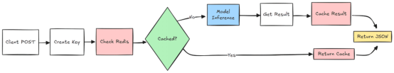 当用户请求产品推荐时,系统先检查该请求是否已被缓存。如果已缓存,则在几微秒内返回缓存的响应,从而提供无缝的体验。如果没有缓存,模型就处理该请求,生成推荐,并将结果存储在Redis中供将来的请求使用。这种方法不仅提高了用户满意度,还优化了服务器资源,使模型能够高效地处理更多请求。