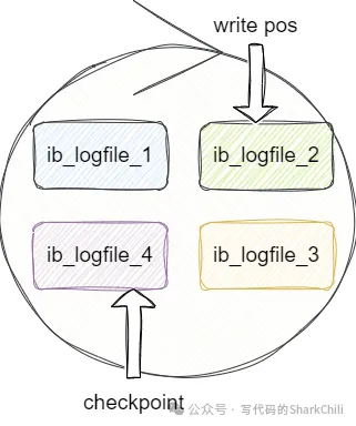 redolog通过write pos标记当前写入的位置,每次完成写入write pos标志位后移,一旦write pos和checkpoint相遇时就说明文件满了,此时innodb就会通过让checkpoint往后移进行一些空间数据擦除,以此来保证一个足够空间容纳新数据。