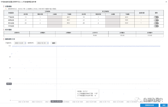 再来看看另外一个数据库的共享缓存区命中率,其点的集中度还是比较集中,但是还是存在散落分布的,差异很大的值。这些值要不要告警呢?告警对我们的运维有什么意义呢?也真的说不清楚。而且如果我们运维数百套,甚至上千套类似的数据库系统,我们也无法对这些数据库系统设置合理的基线阈值。如果不去做个性化的设置,那么基线告警就不准确,运维告警工作陷入了两难的境地。