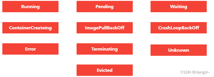 ImagePullBackOff 镜像拉取失败,网络不通,镜像名称有误或者镜像仓库认证失败都可能有这个报错。CrashLoopBackOff 探针检测失败,服务对网络或者其他pod服务有依赖等,此外宿主机上的安全软件可能也会导致容器无法正常启动。Pending 一般是调度失败,pod没有可调度的节点,常见原因:节点有污点,不满足节点亲和性,或者节点处于notready状态。Evicted 当节点内存、磁盘或者cpu资源不足时,K8s 会按照 QoS 等级对节点上的某些 Pod 进行驱逐,释放资源保证节点可用性,kubelet可以配置内存,cpu和磁盘的驱逐阈值。Terminating pod删除后超过terminationGracePeriodSeconds参数时间还处于Terminating状态可能是存在节点故障,和master节点失联,可以检查节点状态或者尝试重启kubeletCompleted 此状态通常是job类的pod执行完成了正常退出容器。Init:Error pod初始化失败,可以查看init pod的日志定位。问题定位经常需要使用如下命令: