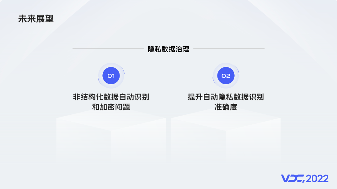 阶段一:数据库混合资源管理(这是当前所在的阶段,套餐,版本可以混合)。阶段二:数据库容器混合资源管理,这一阶段主要是利用容器消除机型隔离,品类隔离,有助于更高密度资源部署以及套餐统一标准化的实现。阶段三:存算分离架构数据库的资源管理。在底层资源调度层面发挥到极致后,只能通过数据库架构本身的升级提升资源弹性。5.3 隐私数据治理在个人隐私数据这个方向,还有两个待解决的问题: